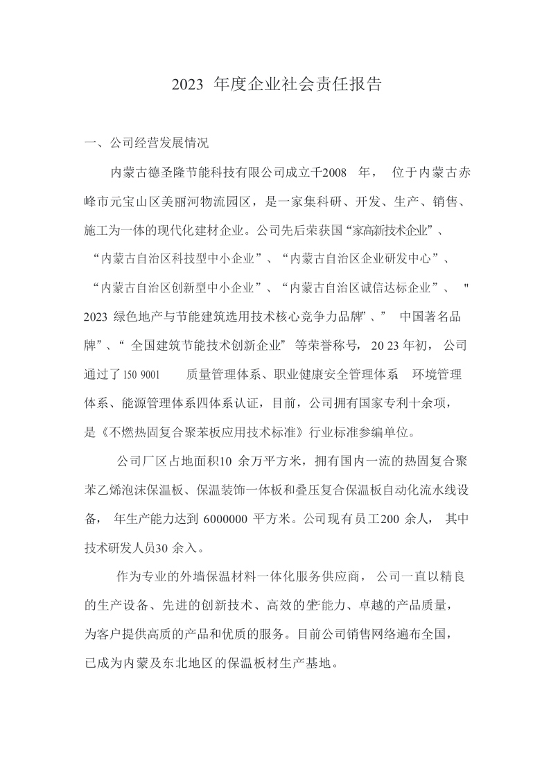 內(nèi)蒙古德圣隆節(jié)能科技有限公司成立于2019年,位于內(nèi)蒙古赤峰市元寶山區(qū)美麗河鎮(zhèn)物流園區(qū),是一家集科研、開發(fā)、生產(chǎn)、銷售、施工為一體的現(xiàn)代化建材企業(yè)。公司主營產(chǎn)品:熱固復(fù)合聚苯乙烯泡沫保溫板、保溫裝飾一體板和泡沫混凝土保溫板,年生產(chǎn)能力達到6000000平方米。